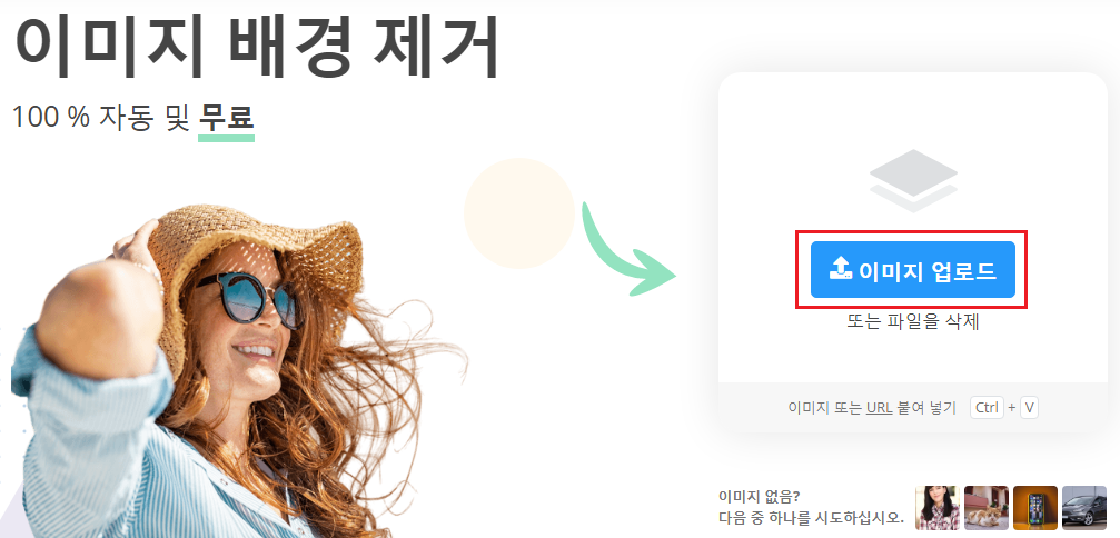 이미지 배경 제거 사이트로 이동하면 [이미지 업로드]를 클릭합니다.