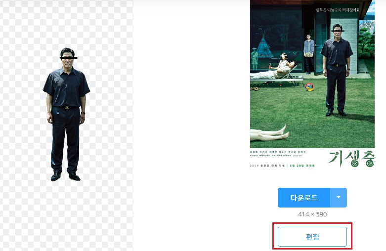 기생충 포스터를 업로드하면 배경이 지워진 이미지가 뜹니다.