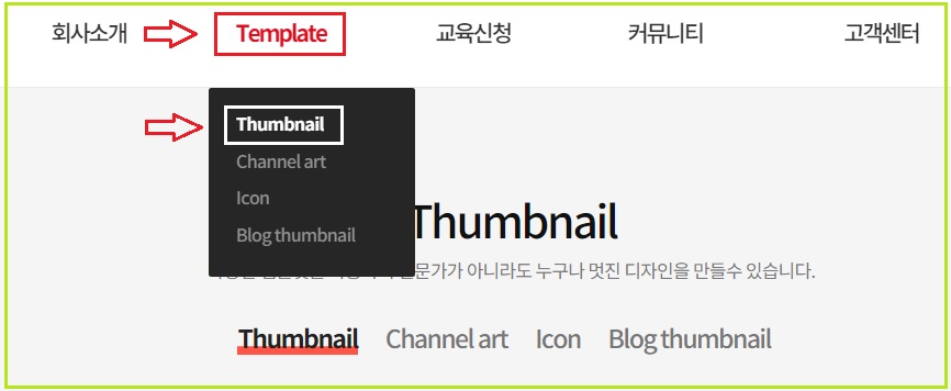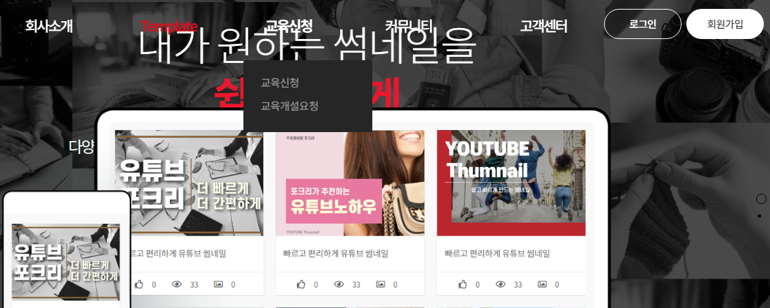 로그인 후 템플릿의 하위 메뉴인 썸네일을 클릭합니다.