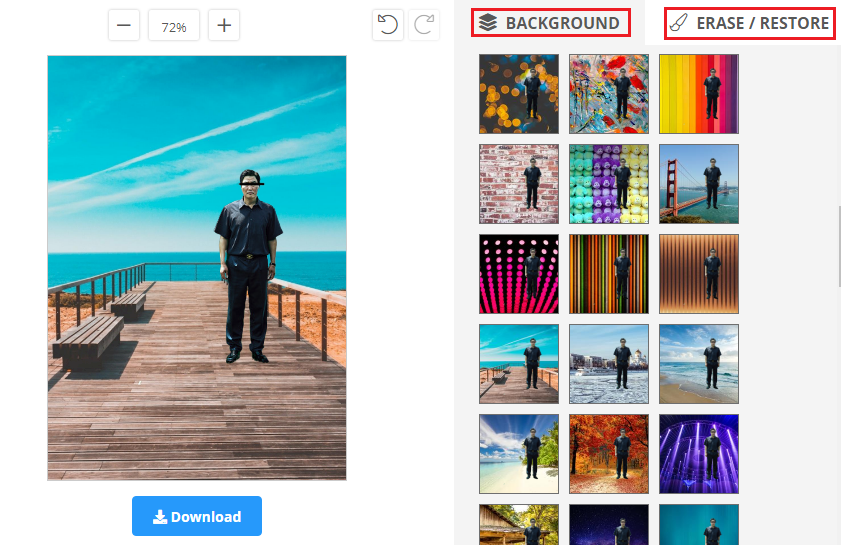 [BACKGROUND]메뉴에서 새로운 배경을 선택하여 완성합니다.