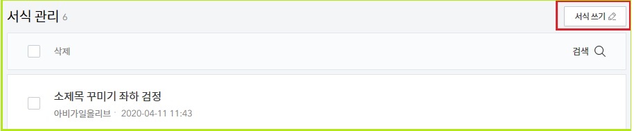 오른쪽 위에 [서식쓰기]를 클릭합니다.