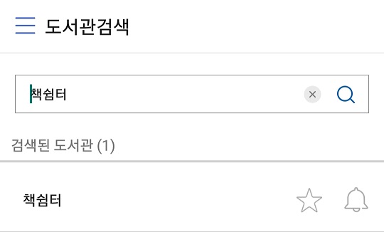 앱이 설치되면 앱을 실행시켜 도서관 검색에서 [책쉼터]를 검색해서 이동합니다.