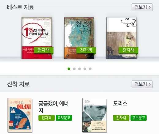 베스트 자료와 신착 자료 목록 중에 골라도 되고 직접 검색할 수도 있습니다.