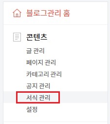 [블로그관리홈]-[콘텐츠]-[서식관리]를 클릭합니다.