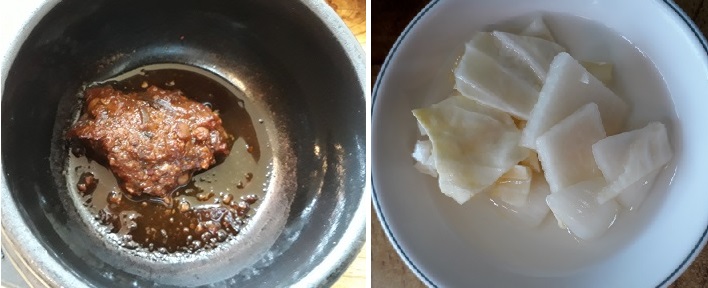 완전히 식혀서 꼬들꼬들해졌을 때가 더 맛있습니다.