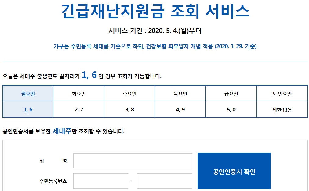 홈페이지(https://긴급재난지원금.kr)를 통해