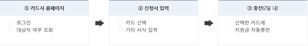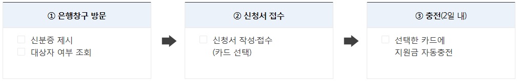 선택한 신용.체크카드에 “긴급재난지원금” 충전(신청 후 2일 내)