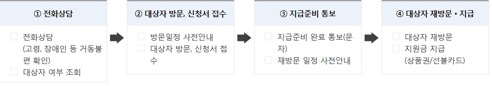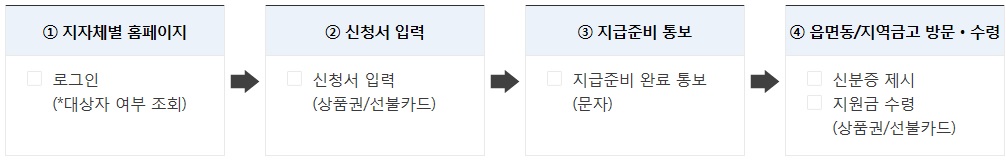 지급준비 완료 통보 후 지자체에서 재방문.지급(상품권, 선불카드)