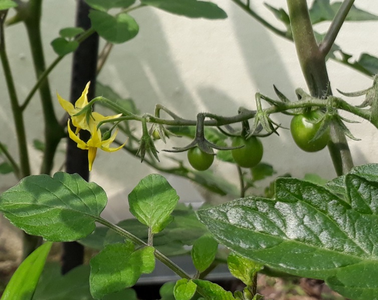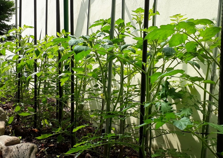 쪼그리고 앉아 토마토에 맺힌 열매를 보고 있더군요.