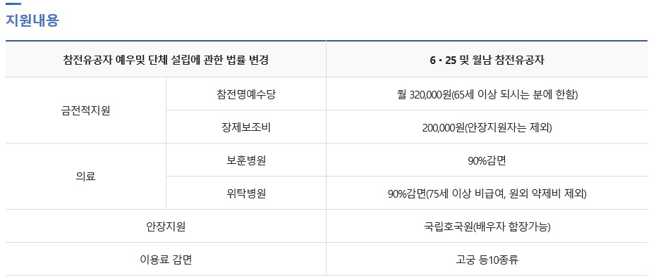 625 참전용사 혜택