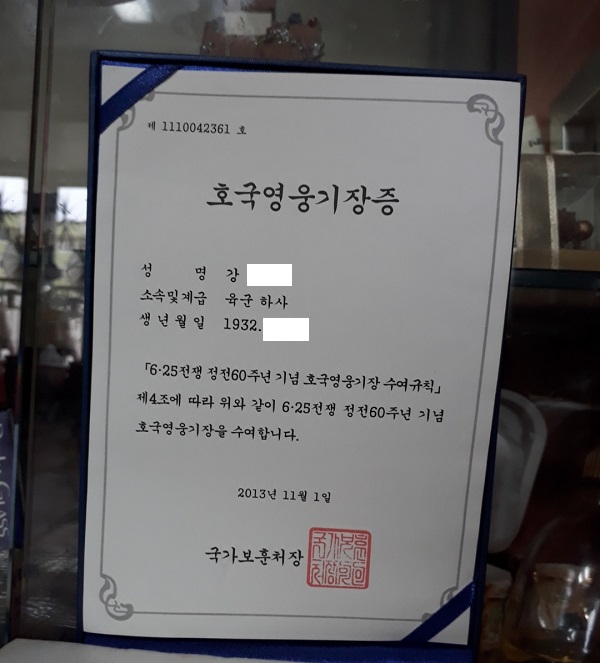 625전쟁에 참전하고 퇴직한 경찰공무원