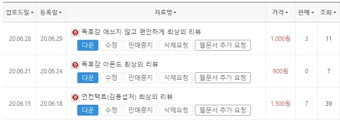 더 많은 수익을 내기 위해 낱개 자료를 올려 판매하고