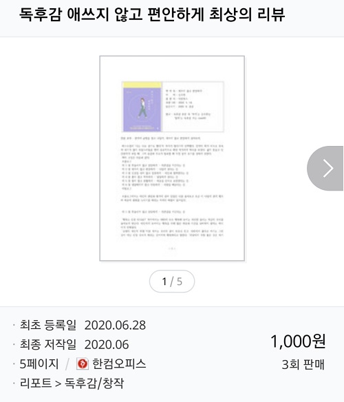 전문 자료가 물론 더 비싸게 팔리지만 영화평이나 독후감도 잘 팔립니다.