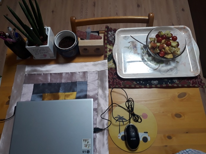 사과를 자르면서 우걱우걱 먹었다. 5분이면 식사 끝.