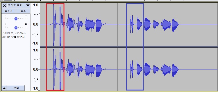 오른쪽 파란 박스는 팝 필터 끼고 녹음한 것입니다.