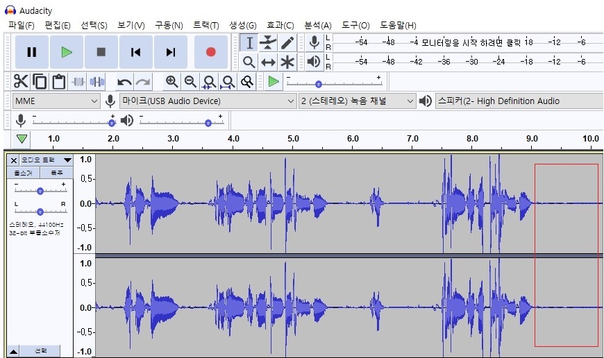 아래 사진은 녹음을 마친 후 아무 작업도 하지 않은 파일입니다.