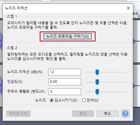 팝업 메뉴에서 [노이즈 프로파일구하기]를 클릭합니다.
