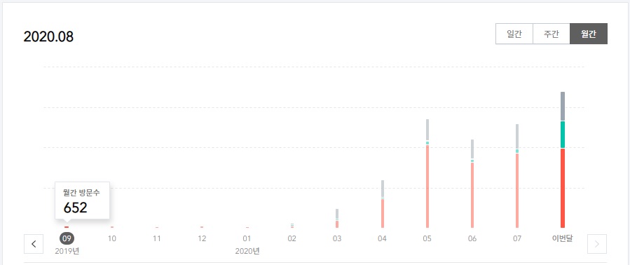 8월이 되자 저도 3월보다 다섯 배 많은 일 방문자수가 되었네요.