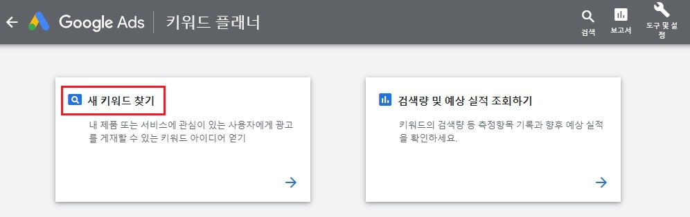 구글 애즈 키워드 플래너 새 키워드 찾기 사용법