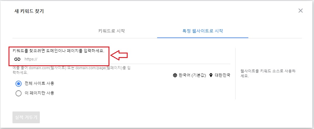 [키워드를 찾으려면 도메인이나 페이지를 입력하세요] 밑에