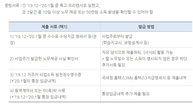 직종 특성상 ‘19.12~’20.1월에 소득이 없는 경우