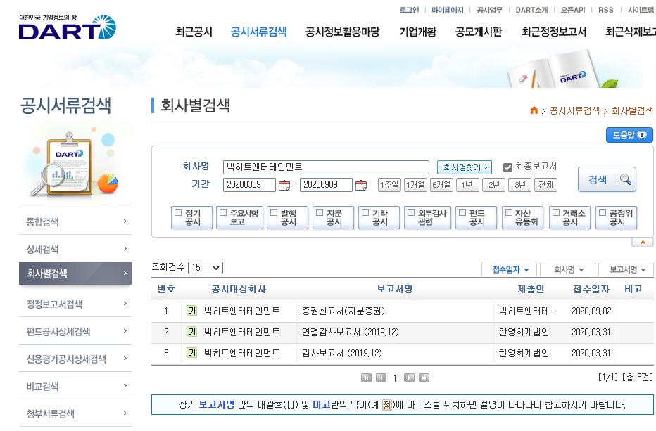 전자공시시스템 DART(http://dart.fss.or.kr/)에서