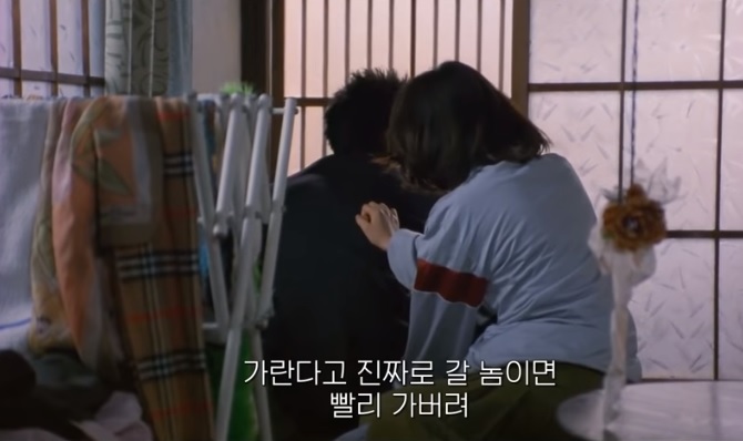 물고기 조형물을 보고 선택한 숙소에서 조제가 말합니다.