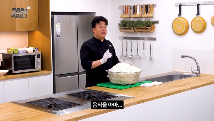 백종원 선생님은 올이 나간 스타킹에 하나 넣고 매듭 묶고 하나 넣고 매듭 묶고....