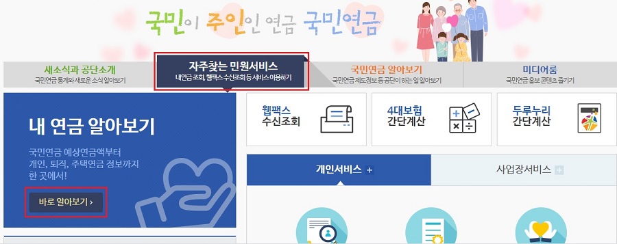 국민연금공단 홈페이지 바로가기