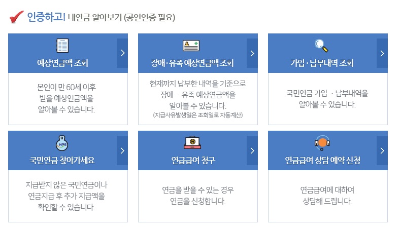 공인인증서가 있으면 실제로 내가 납부한 국민연금 납부액조회와 예상수령액 조회가 가능합니다.