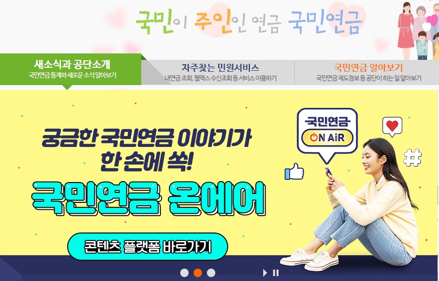 국민연금 공단 홈페이지에 접속합니다.