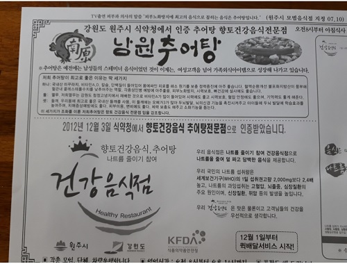 제가 원주에서 가 본 추어탕 집은 세 군데입니다. 복 추어탕, 대복 추어탕, 원조 남원추어탕.
