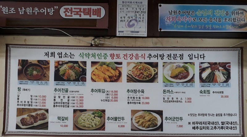입구에 ‘저희 업소는 남원추어탕 체인점이 아닌 원조 남원추어탕 독자브랜드입니다.’란 안내문구로