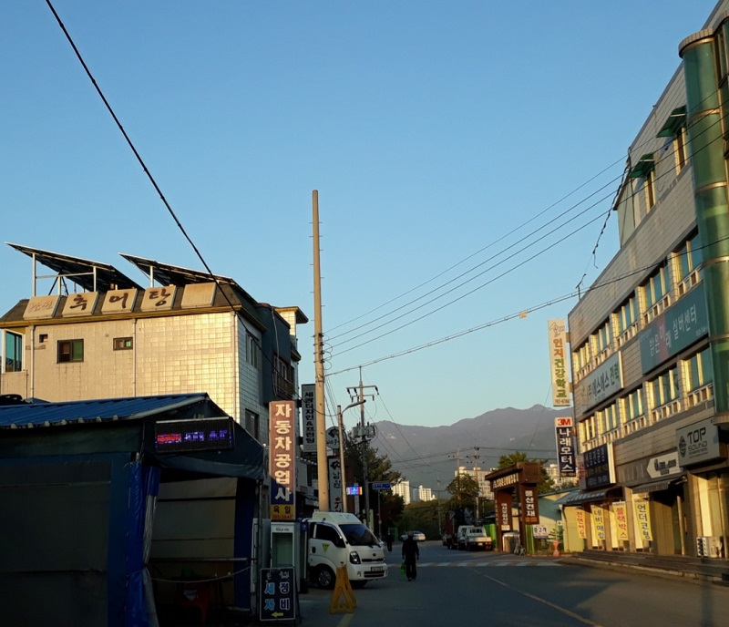 가을 햇빛이 비스듬히 기울기 시작한 시각에 15분 정도 천천히 걸어갔습니다.