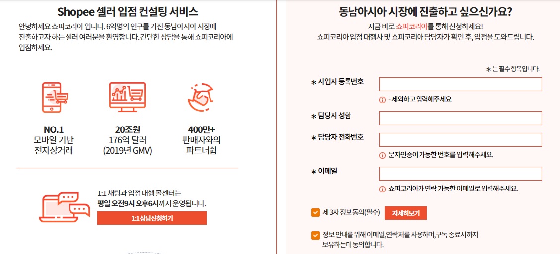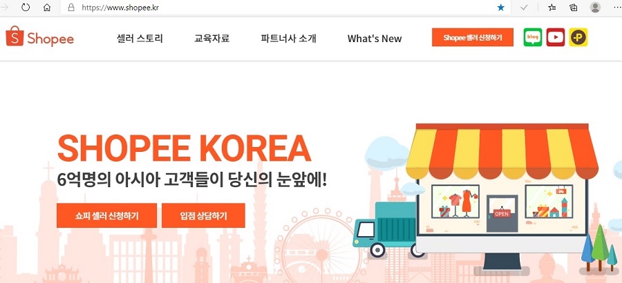 홈페이지 내 Shopee 셀러 신청하기 페이지를 통해 신청합니다.