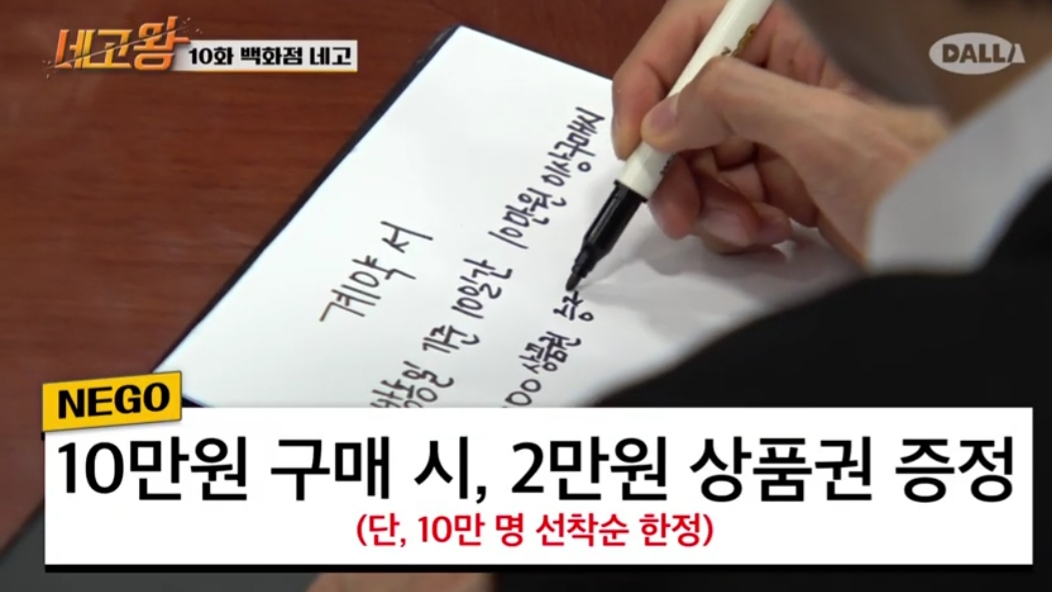 네고왕이 롯데백화점에서 계약하고 온 내용은 다음과 같습니다.