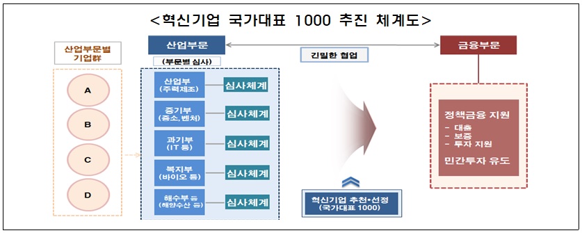 정부는 '혁신기업 1000 금융애로지원단'을 운영, 선정기업 지원현황과 기업의 애로사항 등을 주기적으로 점검한다고 밝혔습니다.