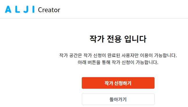 [작가공간]을 클릭하면 ‘작가전용입니다’ 페이지가 뜹니다.