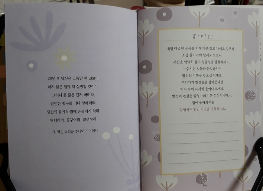 읽기를 멈추고 나만의 다이어리를 쓰면 더 좋겠지요.