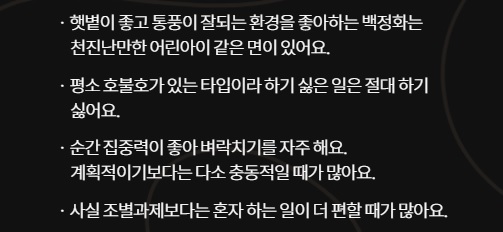 꽃 mbti 백정화 특징
