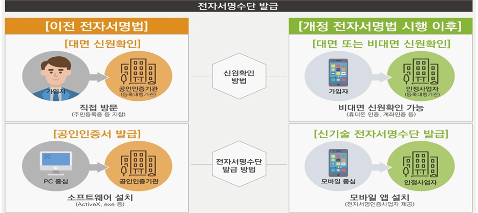 ‘전자서명법’ 전부개정안이 공포된 것에 따른 후속 조처입니다.
