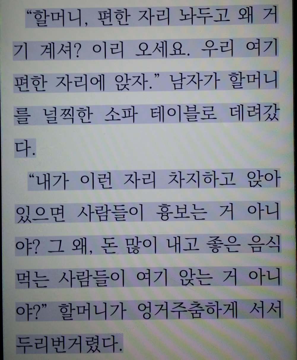 제가 눈물 흘린 부분은 죽은 사람들의 꿈 이야기인데요. 어린 아이를 잃은 부모가 꿈속에서 아이를 만나는 이야기, 자신을 금지옥엽 키워준 할머니를 꿈속에서 만난 청년의 이야기를 읽으면서 마음이 짠했습니다.