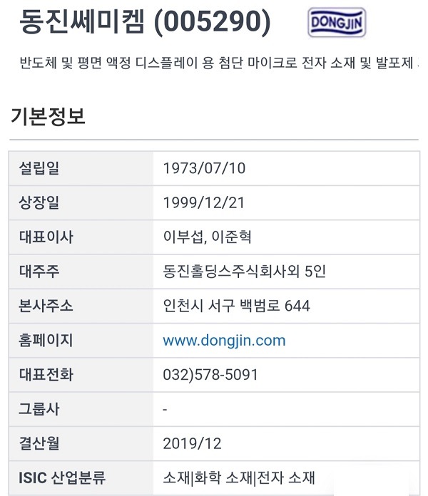 반도체 제조 공정 핵심 기술을 가진 동진쎄미켐(0052920)을 소개합니다.