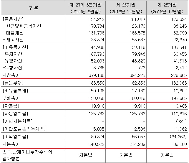 케이엠더블유 제무재표