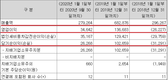 케이엠더블유의 2020면 3-4분기 매출액은 전년대비 71.9% 감소한 745억 원, 영업이익은 89.5% 감소한 60억 원이었습니다.