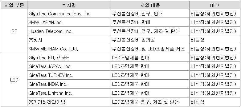 아래와 같이 11개의 종속회사가 있습니다.