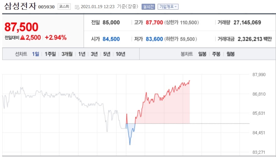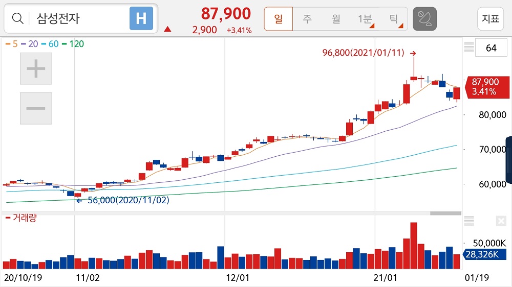 삼성전자 주가는 단기급등에 따른 조정, 횡보, 급락 등 파동을 그리며 변화되겠지만 몇 년 후를 보며 꾸준히 사 모을 예정입니다. 휴대폰은 삼성 제품만 쓰며 응원하고 있습니다~^^