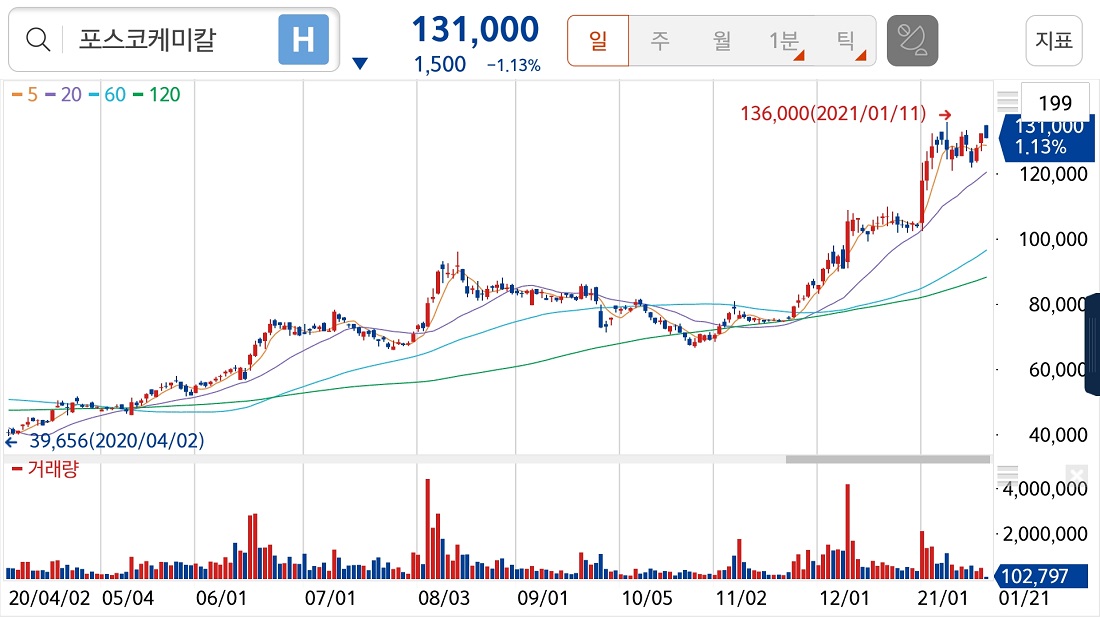 박 부장이 올 상반기 주목하는 종목은 포스코케미칼, 테스나 등입니다. 포스코케미칼은 포스코의 2차전지 소재 사업을 담당하는 회사로 전기차 배터리 사업을 강화하고 있습니다.