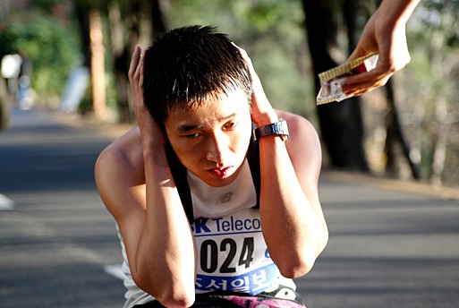 초원이가 마라톤을 하던 중 힘들어 주저앉는다.