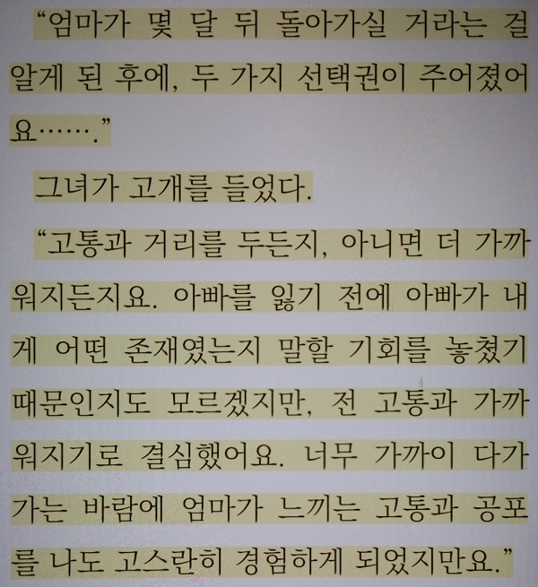 저는 e북 듣기 기능으로 설거지를 하며 <숲과 별이 만나는 때>를 들었습니다. 그러다가 얼사가 총상으로 병원에 입원한 장면부터 몰입이 확 되면서 눈으로 읽었는데요. 다소 신파적 감동이 분출 되는 소설의 정점은 병원에서 일어난 일련의 사건들이었습니다.
